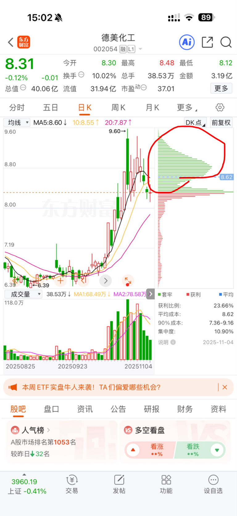 $德美化工(SZ002054)$ 目前来看,没有任何利好的情况,还需要把前面的套牢盘消化掉才有可能继续向上趋势。有得磨了