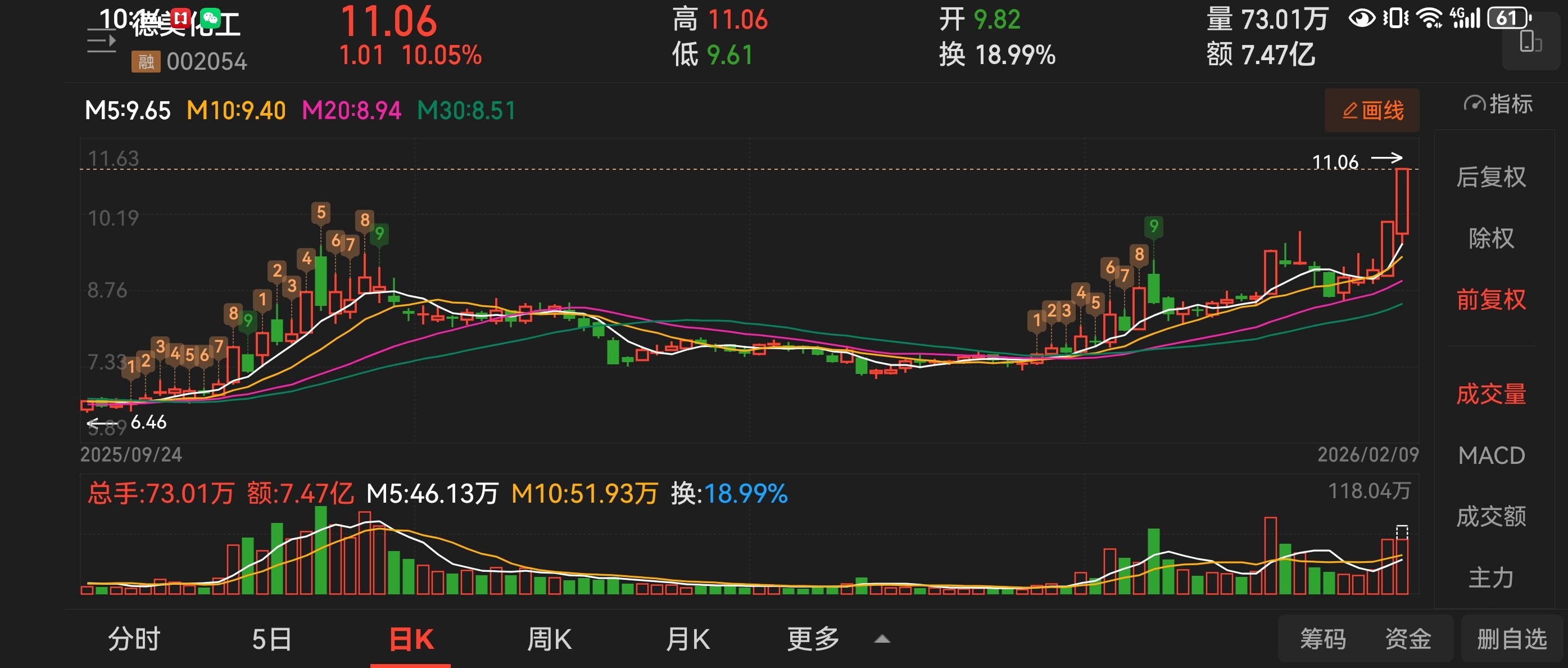 $德美化工(SZ002054)$ 昨日分享的德美化工涨停