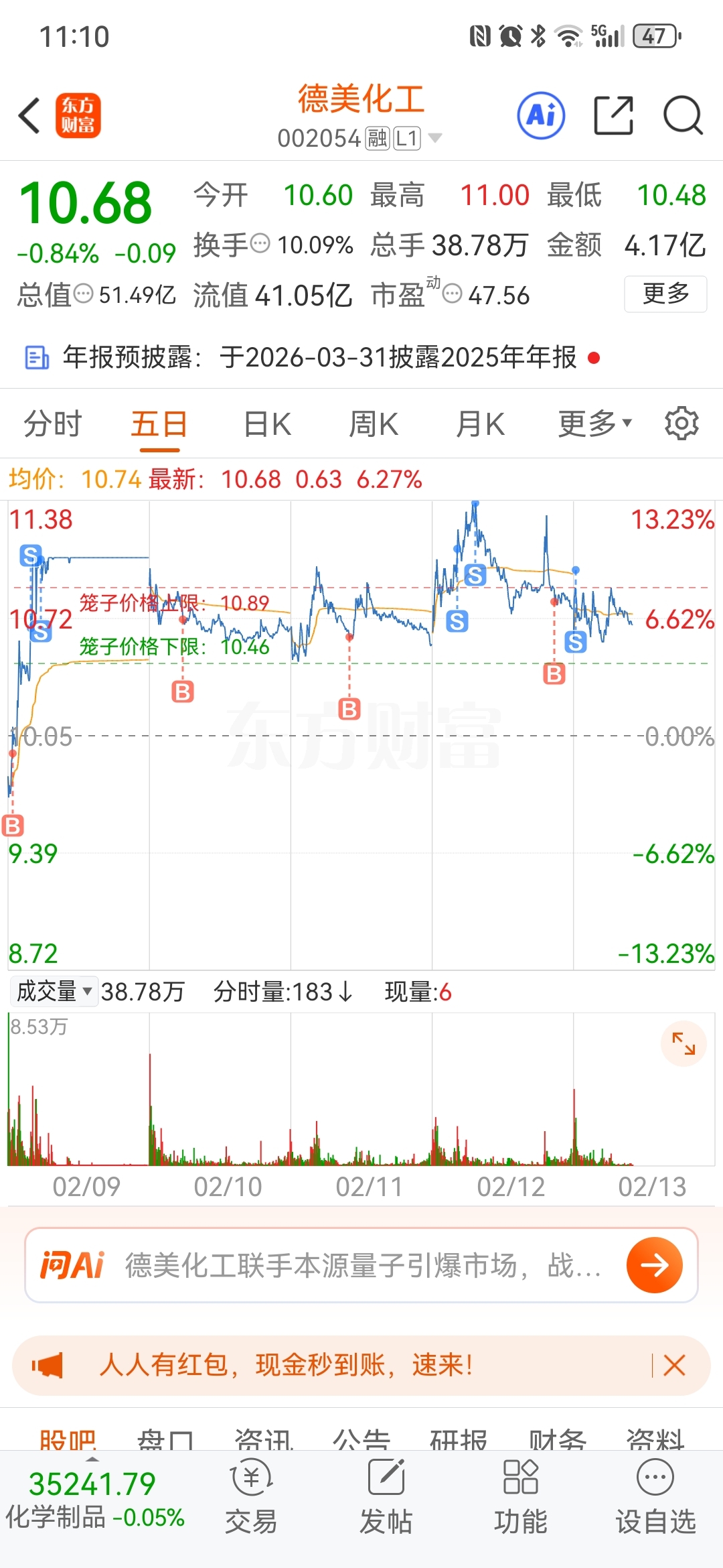 $德美化工(SZ002054)$ 再次感谢主力哥,祝你天天做新郎,