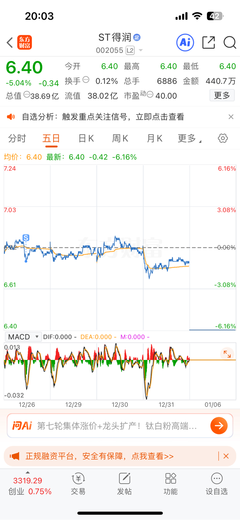 $ST得润(SZ002055)$ 逃过一劫
