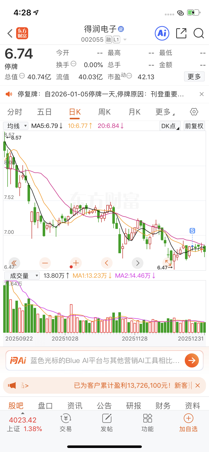 还好跑得快10个点啊,入市来最大亏损,差点腿打断$ST得润(SZ002055)$