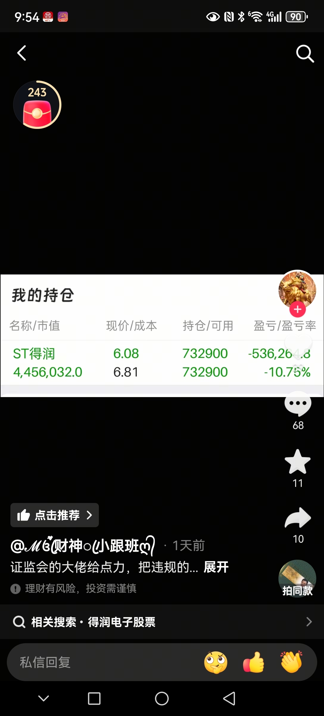 $ST得润(SZ002055)$ 抖音刷到个白仁仔,4百多万抄底。买分红股一年十几万,买红利ETF,一年20几万。