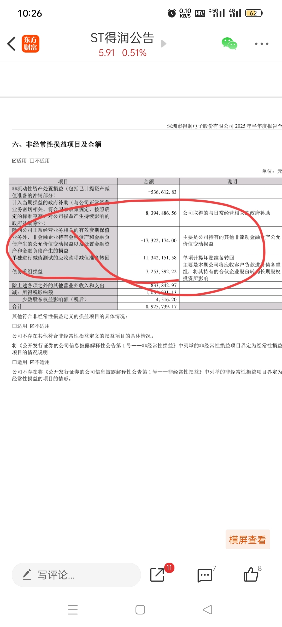 $ST得润(SZ002055)$ 中报扣非计提转回了1100万,公司解释是回款转好,看年报有没有惊喜
