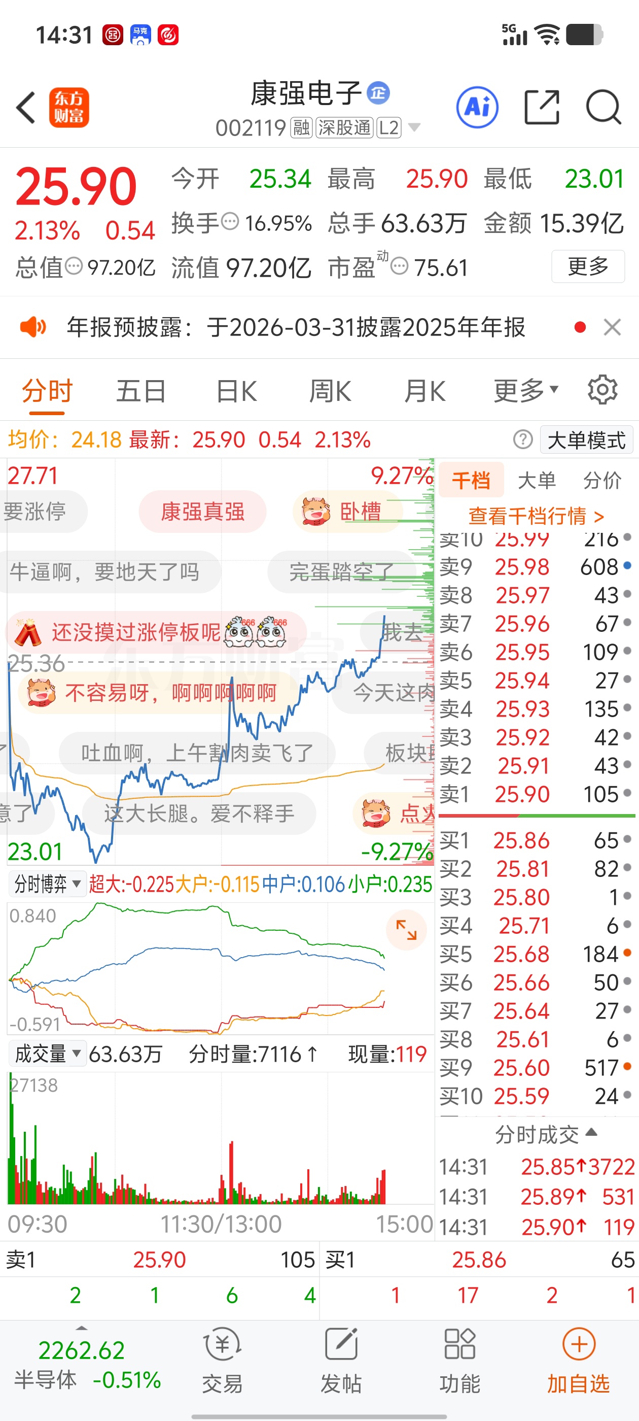 $ST得润(SZ002055)$ 康强电子又得10个点