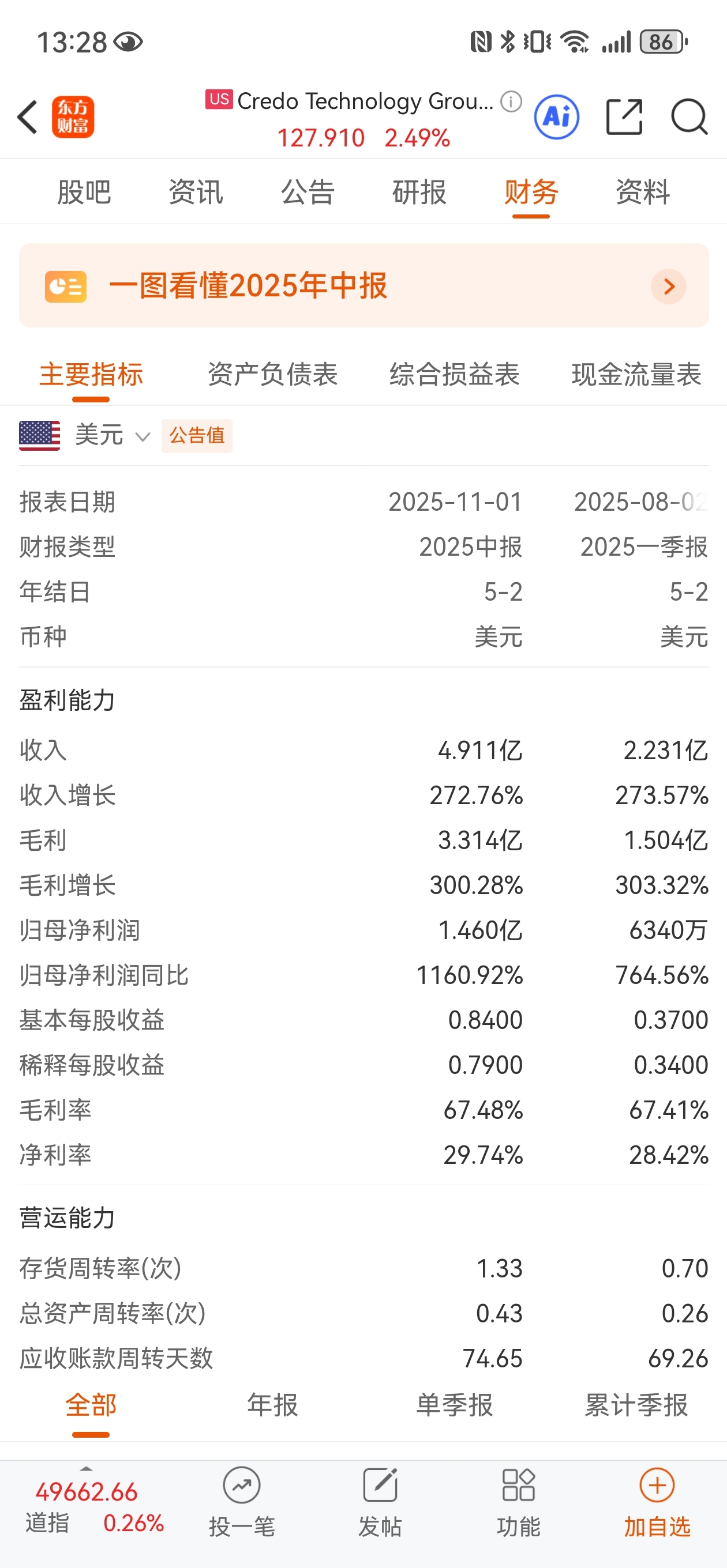 段永平加仓的企业,做高速连接器的,市值231亿美金,半年产值4.9亿美金