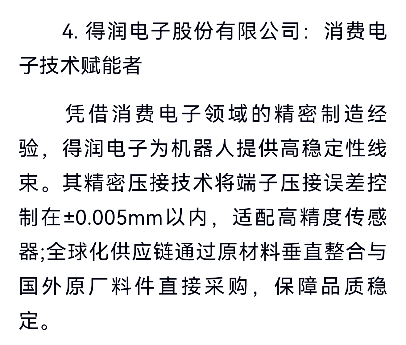 详细描述:"压接精度控制:将端子压接误差控制在±0.005mm以内,适配高精度传感器需求。供应链优势:通过原材料垂直整合与国外原厂料件直接采购,保障品质稳定,故障率低于行业平均水平。"