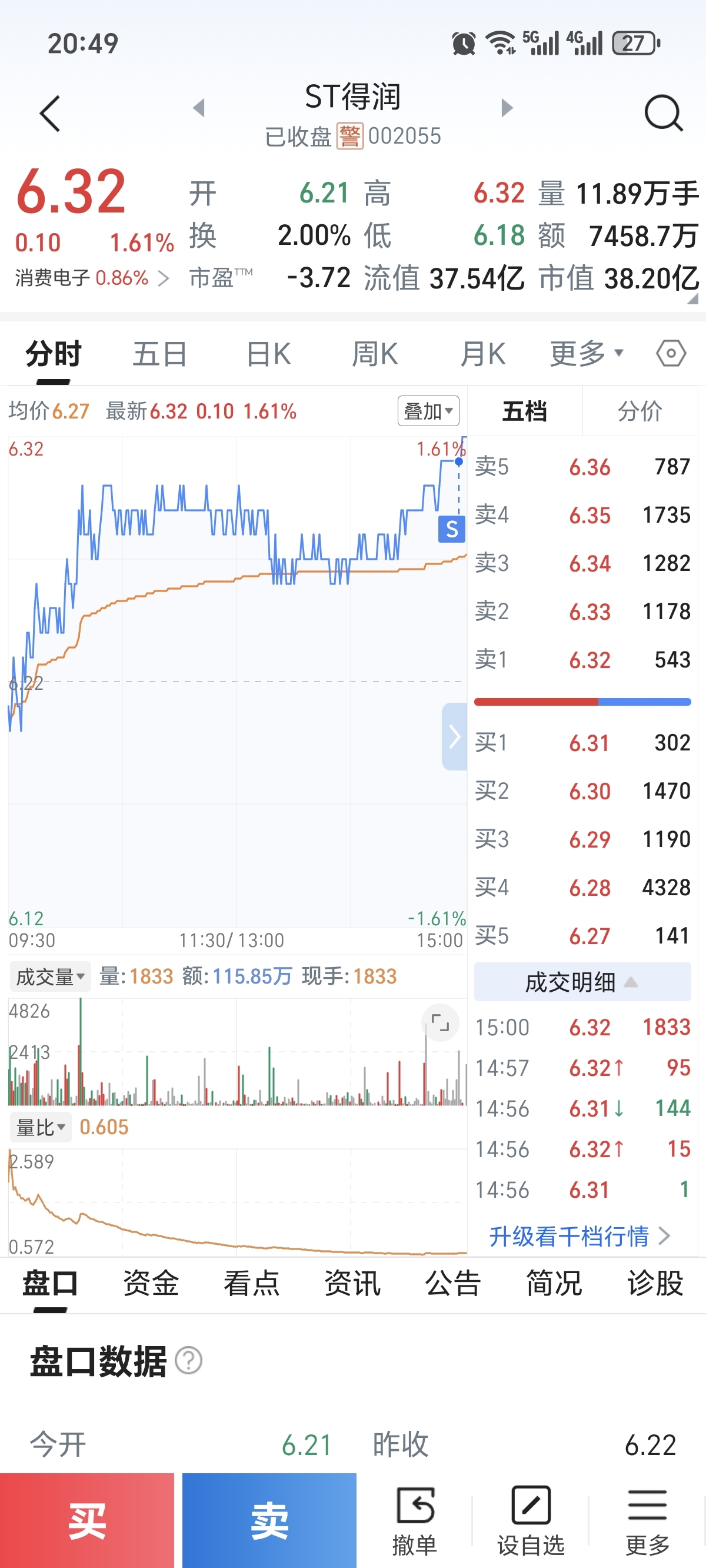 $ST得润(SZ002055)$ 今天6.32赔钱清仓了不知道对错
