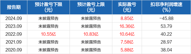 近5年三季报扣非净利润预测情况