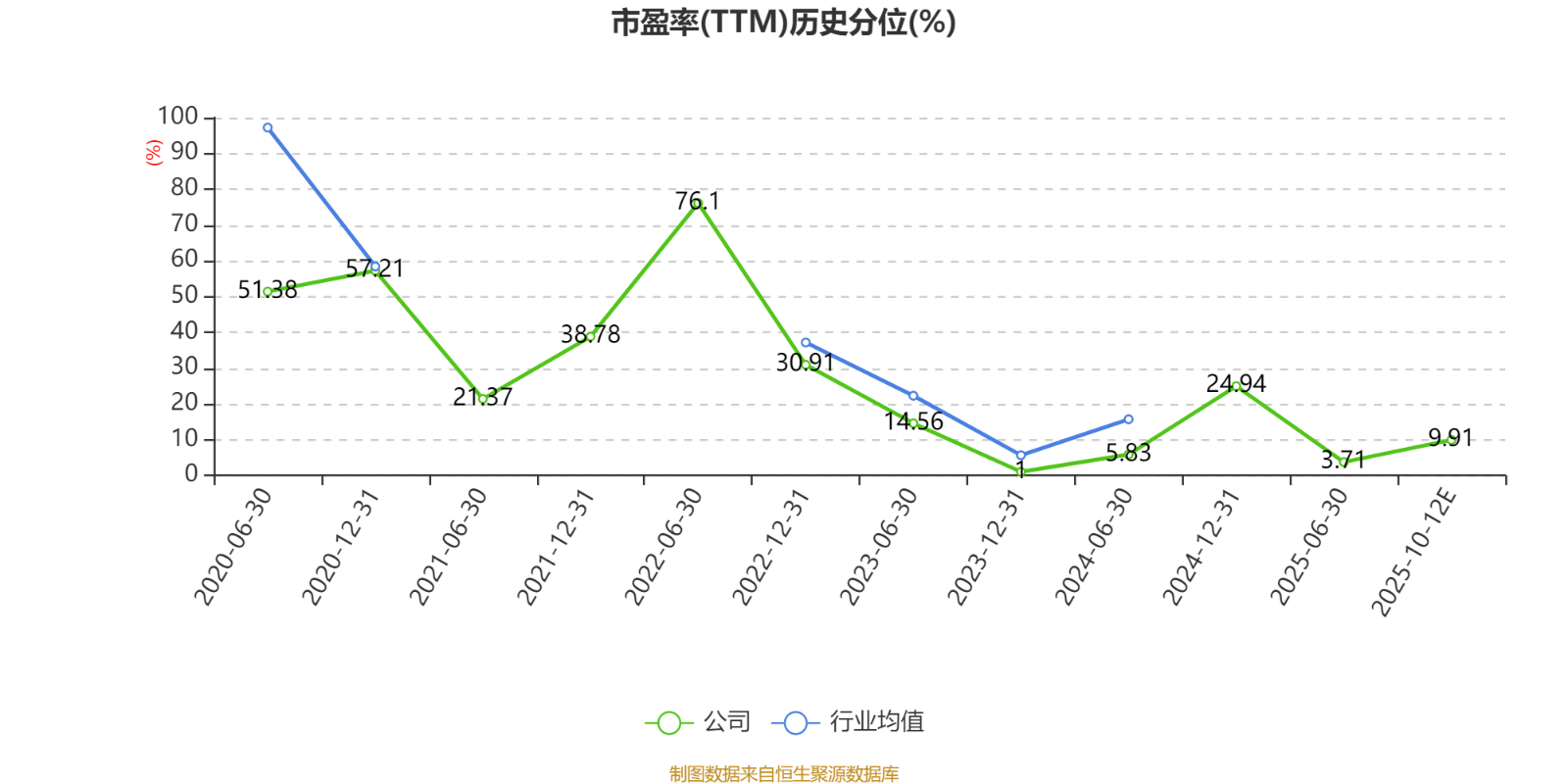 市盈率、市净率为负时,不显示当期分位数,会导致折线图中断。