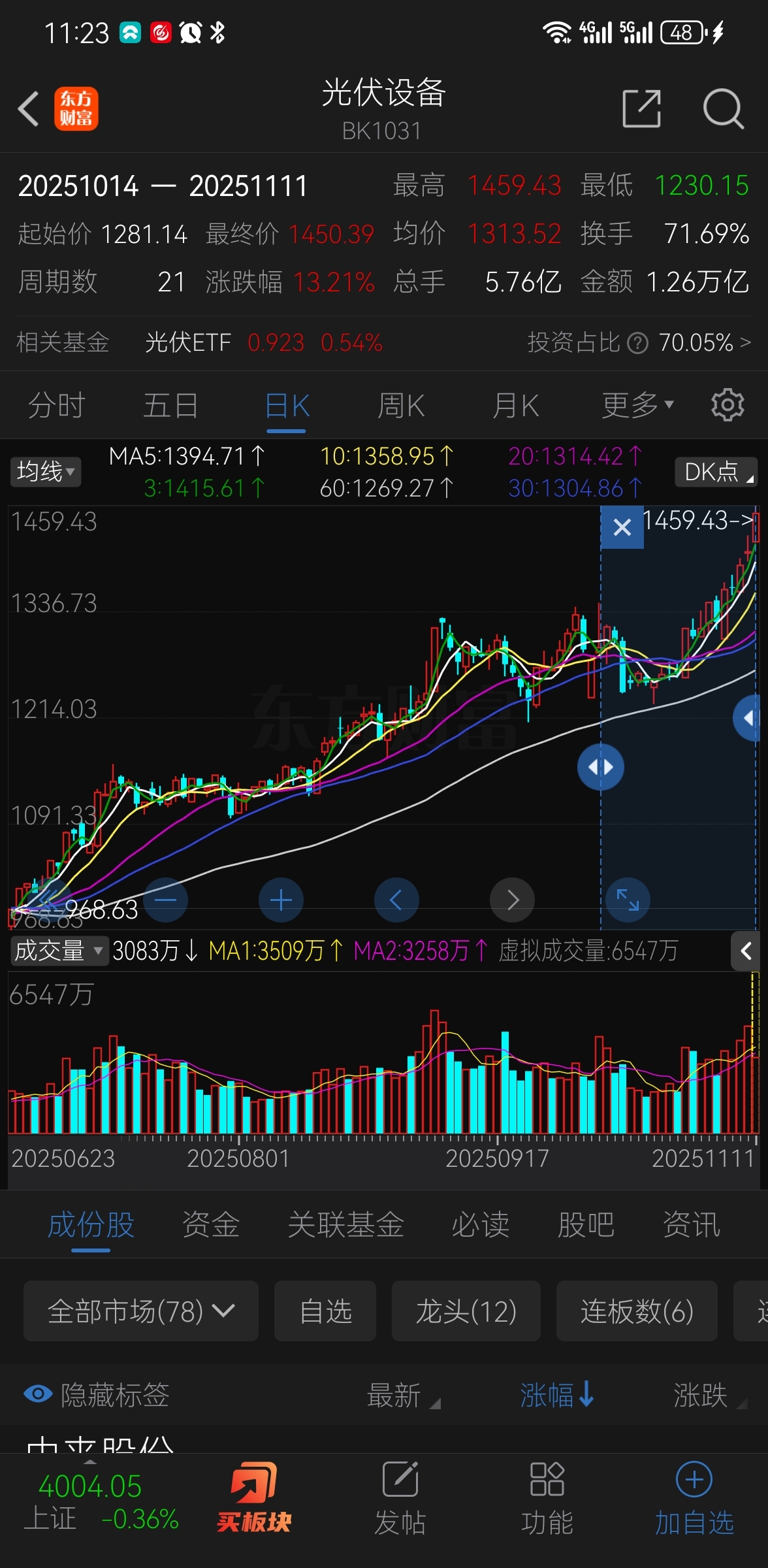跑输光伏光伏10.14(东磁23那天)到现在涨了13%你是怎么做到脱离板块的?