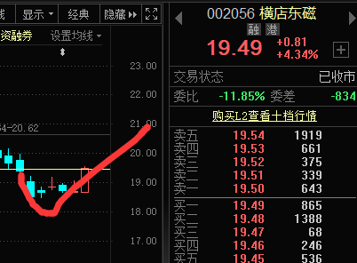横店东磁黄线(庄家成本线),自救回血,回血结束,卖出了结。
