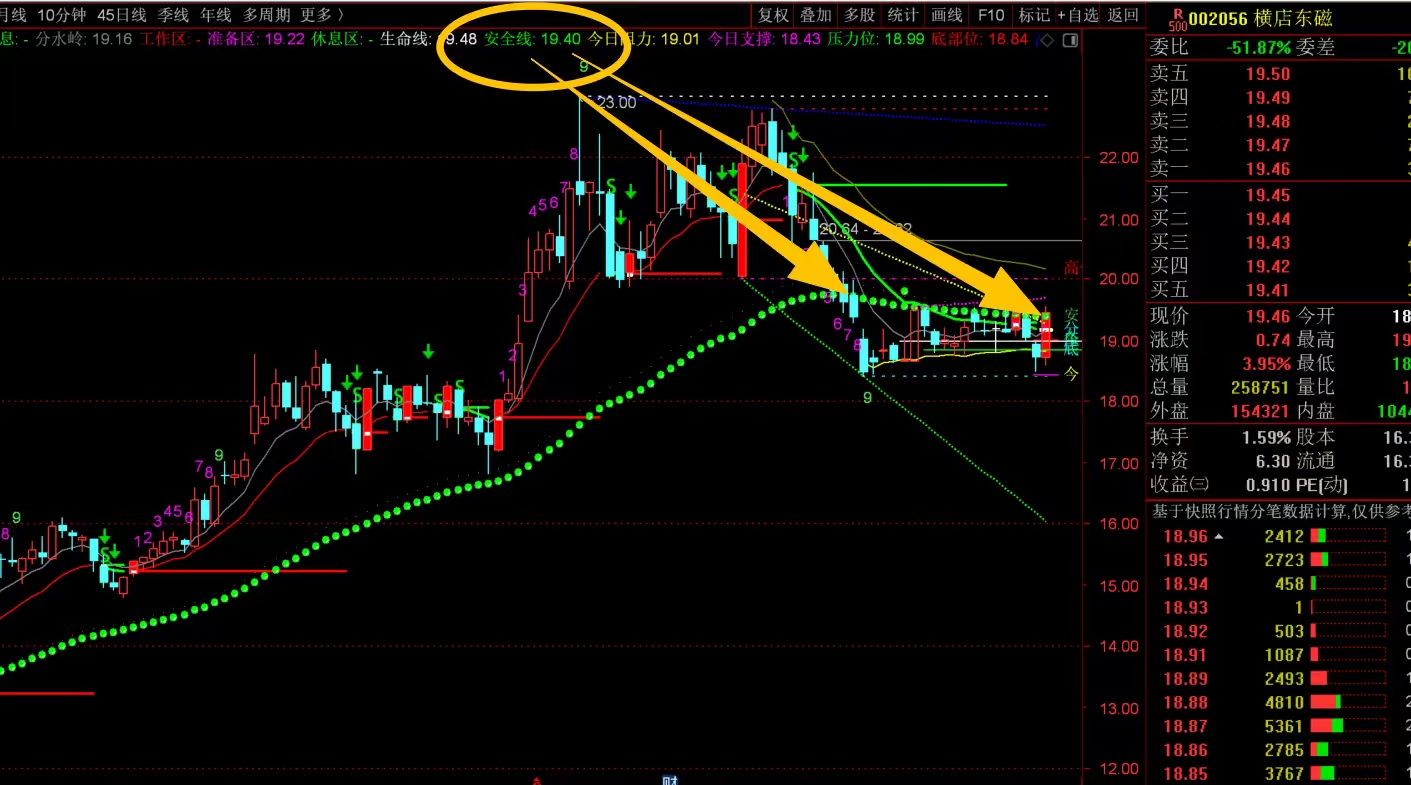 $横店东磁(SZ002056)$ 前期走势比较稳健,一直震荡上行,整体趋势保持得比较好。但近期回调下来,跌破了安全线,这几周都在安全线位置上下折腾,接下来就要重点盯着安全线的得失,能站稳都好说,但如果有效跌破就要严格控制仓位应对,防着连续回落的下杀风险。#炒股日记# #收盘点评#