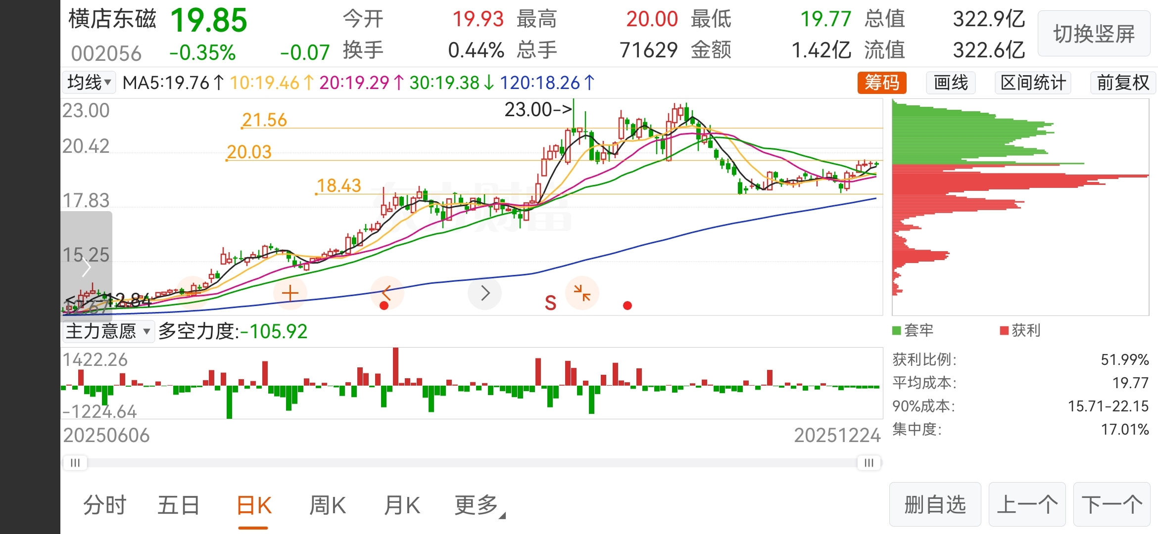 $横店东磁(SZ002056)$ 东磁,20元之上都是散户,这个位置之前是很重要的支撑位,也就是散户进场位。