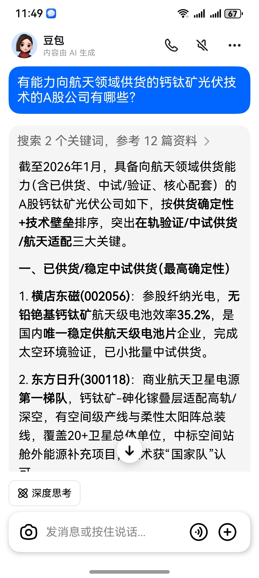 $横店东磁(SZ002056)$ 横店东磁是唯一已经开始向航天领域供应钙钛矿电池的企业。