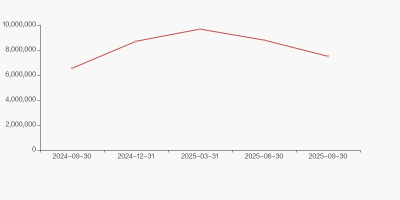 截至2025年9月30日,公司最新总股本为7.54亿股,其中流通股本为7.53亿股。户均持有流通股数量由上期的1.65万股下降至1.33万股,户均流通市值14.58万元。