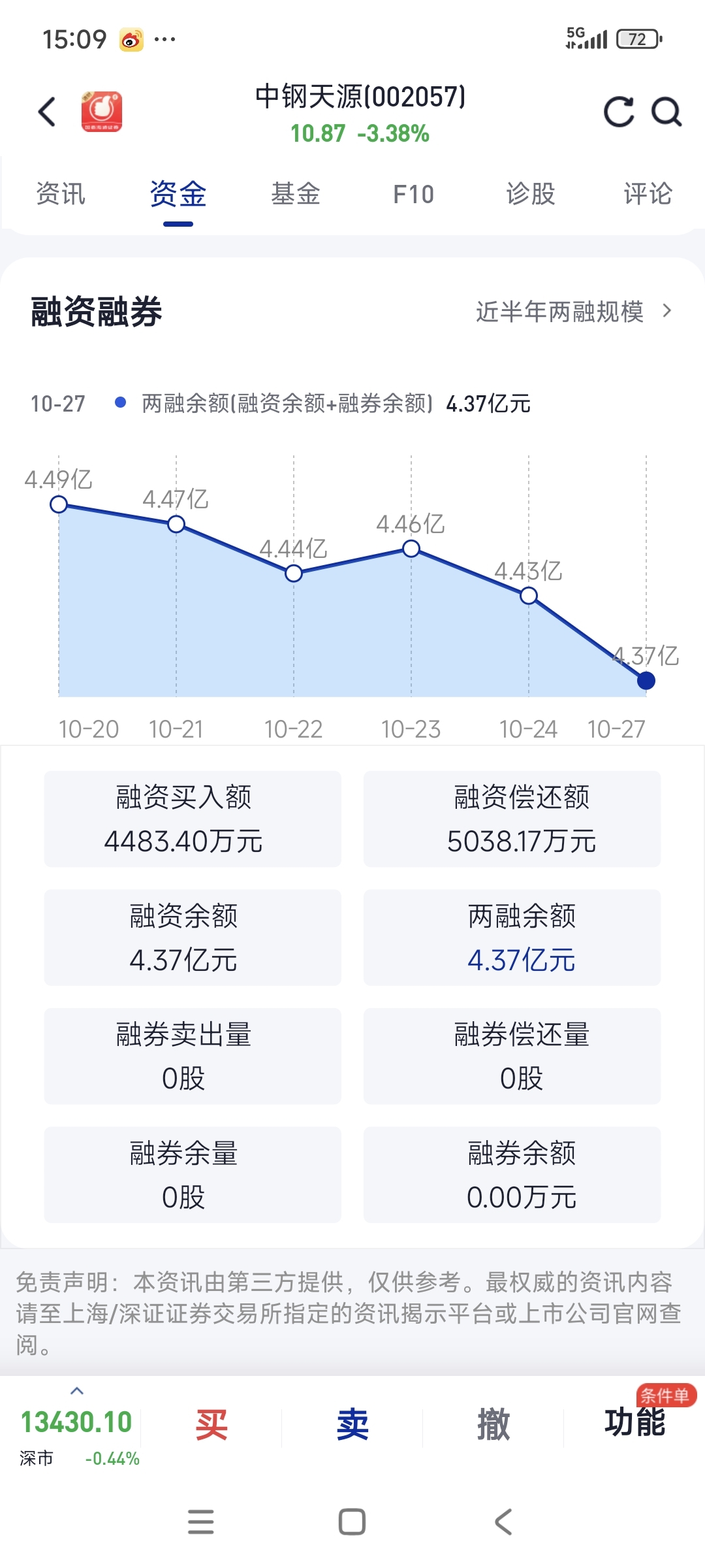 $中钢天源(SZ002057)$ 两融余额越来越少是什么情况?