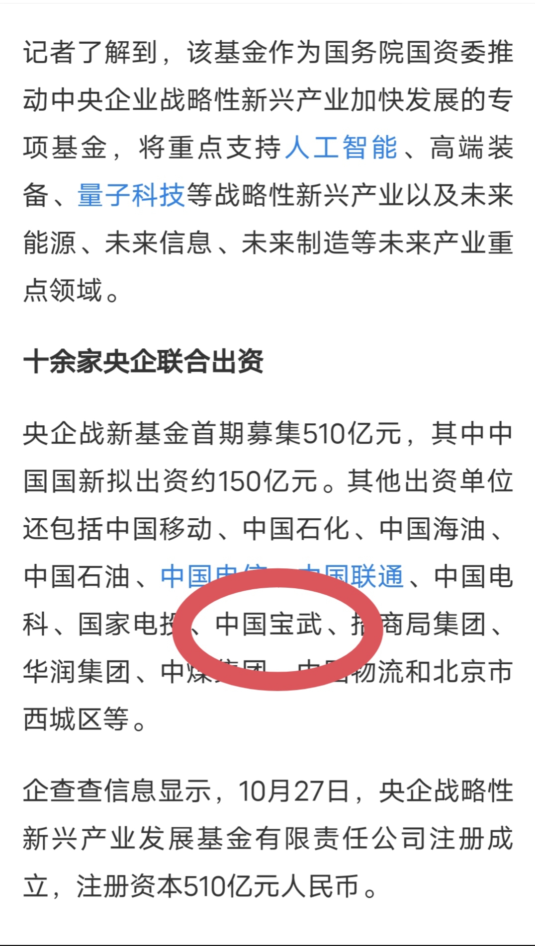 $中钢天源(SZ002057)$ 中国宝武是中钢天源的间接控股股东 。 2022年12月21日,中钢天源的间接控股股东中钢集团收到国务院国资委通知,经报国务院批准,中国宝武与中钢集团实施重组,中钢集团整体划入中国宝武 。本次划转完成后,中国宝武通过中钢集团间接控制中钢天源32.85%的股份,中钢天源的控股股东仍为中钢资本,实际控制人仍为国务院国资委 。