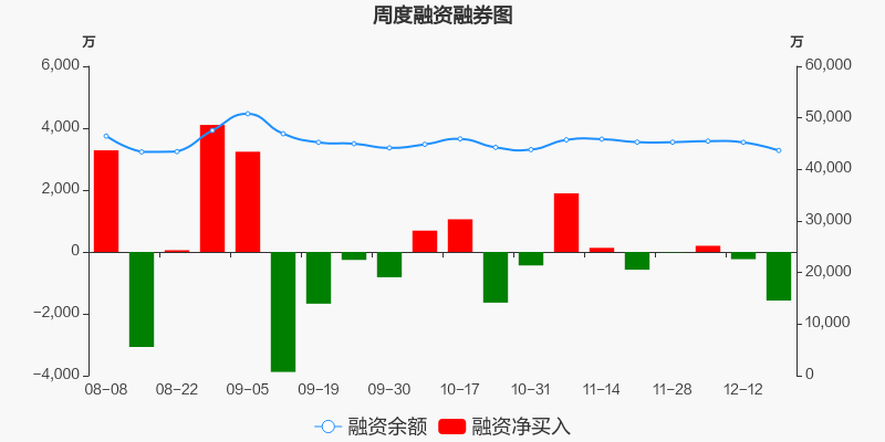 中钢天源本周(2025/12/15-2025/12/19)累计涨幅达4.93%,截至12月19日最新股价报收10.43元。从增量上来看,12月15日至12月18日融资买入交易规模3242.44万元,融资偿还规模4813.2万元,期内融资净偿还1570.76万元。从存量上来看,截止12月21日,中钢天源融资融券余额4.37亿元,其中融资余额规模4.37亿元,融券余额规模8838元。