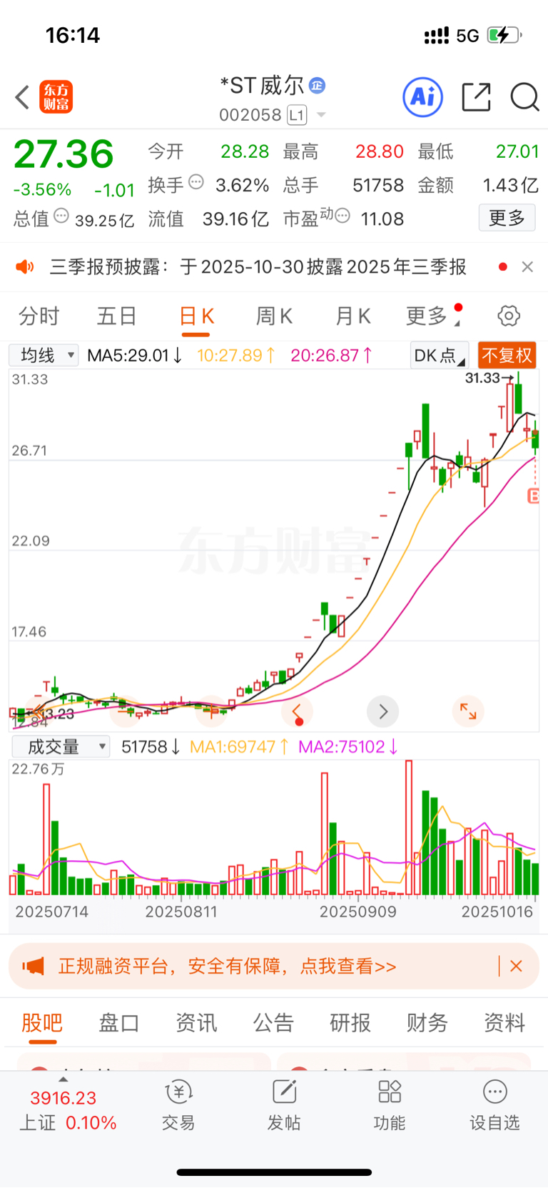$*ST威尔(SZ002058)$ 手欠明天就走,气人