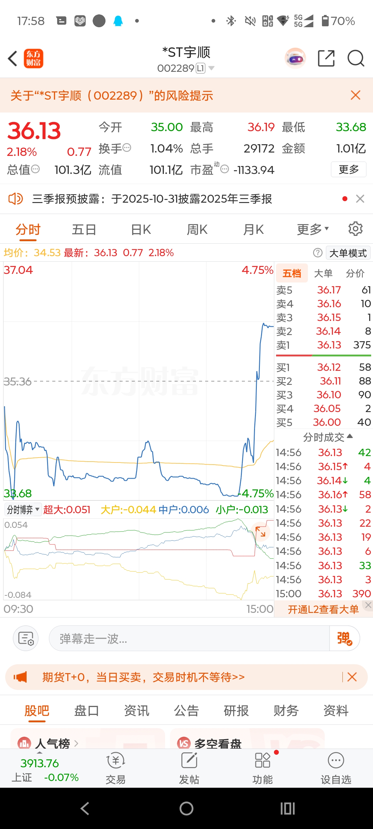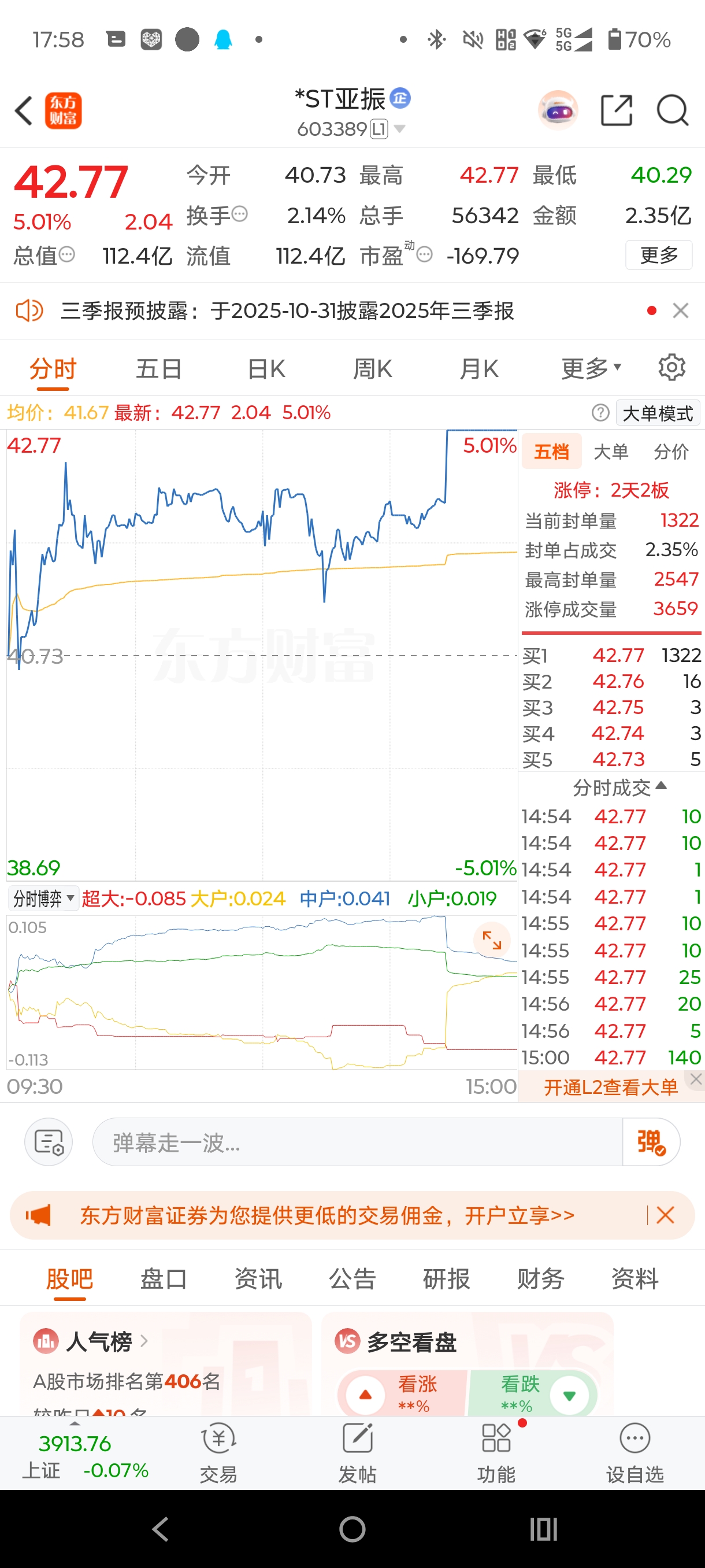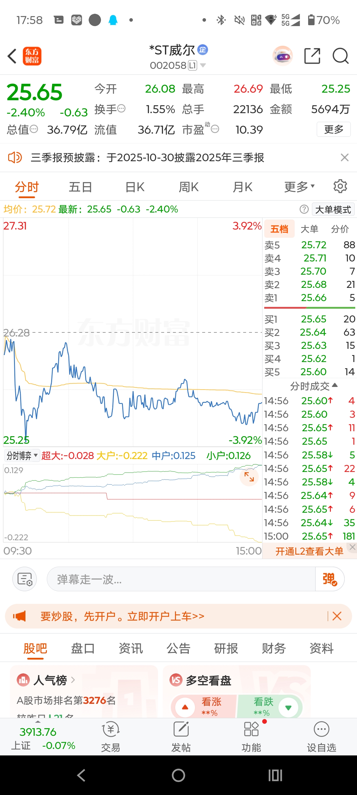 威尔己经不妖了,还得多学习st亚振st宇顺的散户多做T,别被主力出完货套死了,几
