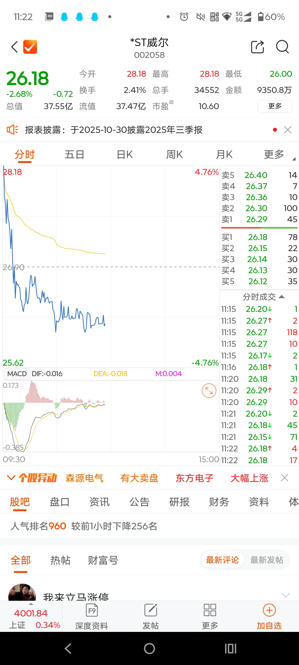 $*ST威尔(SZ002058)$ 你们都别跑,我己经加大资金融券做空了st威尔