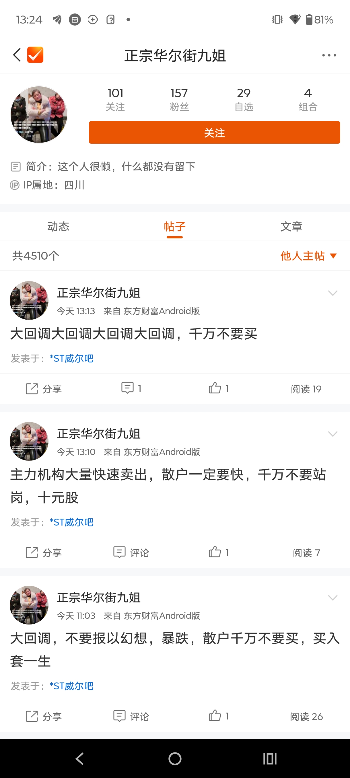 $*ST威尔(SZ002058)$ 正宗华尔街九姐是托不管他唱多唱空,一律拉黑有图为证谁信谁亏钱