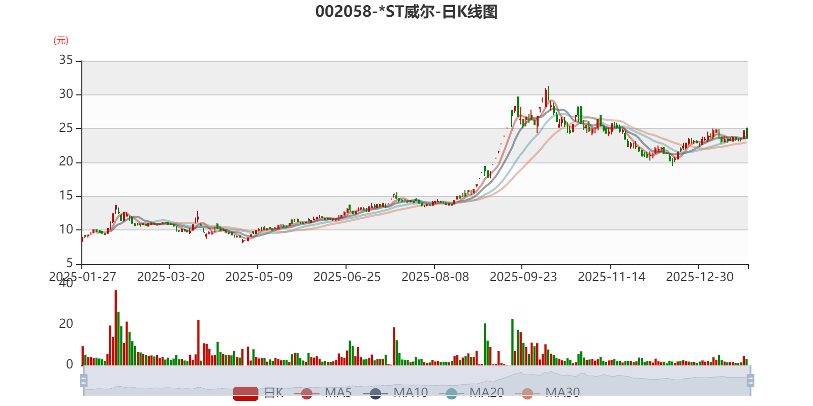 中证智能财讯 *ST威尔(002058)1月26日晚间披露2025年度业绩预告,预计2025年实现营业收入7.9亿元至8.3亿元;归母净利润1.9亿元至2.2亿元,上年同期亏损231.6万元;扣非净利润预计800万元至1200万元,上年同期亏损1905.03万元;基本每股收益1.32元/股-1.53元/股。以1月26日收盘价计算,*ST威尔目前市盈率(TTM)约为15.38倍-17.8倍,市净率(LF)约84.54倍,市销率(TTM)约4.18倍。