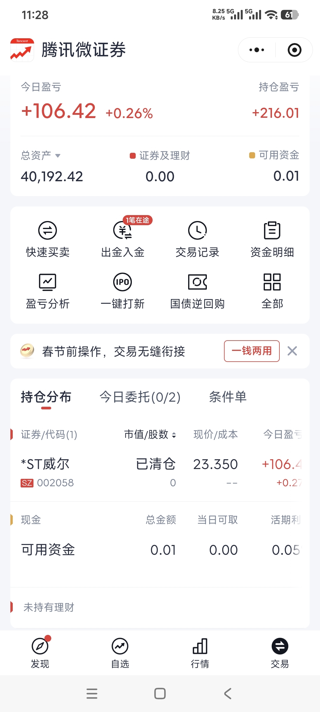 $*ST威尔(SZ002058)$ 清仓拿钱过年,不贪