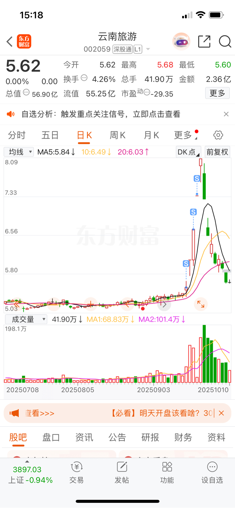 $云南旅游(SZ002059)$ 没有赚在最高点,知足常乐。9月赚最多的一只票。