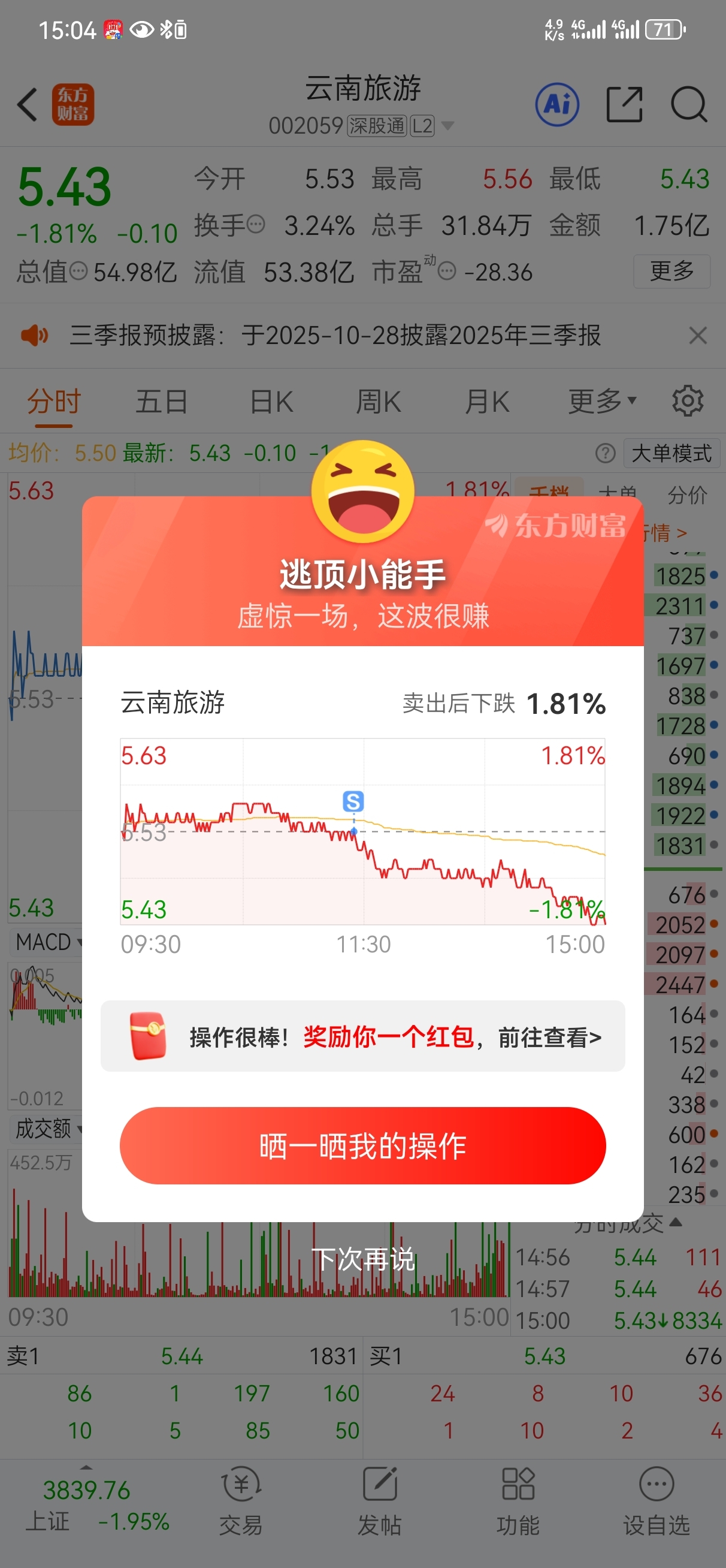 $云南旅游(SZ002059)$ 走了,拜拜