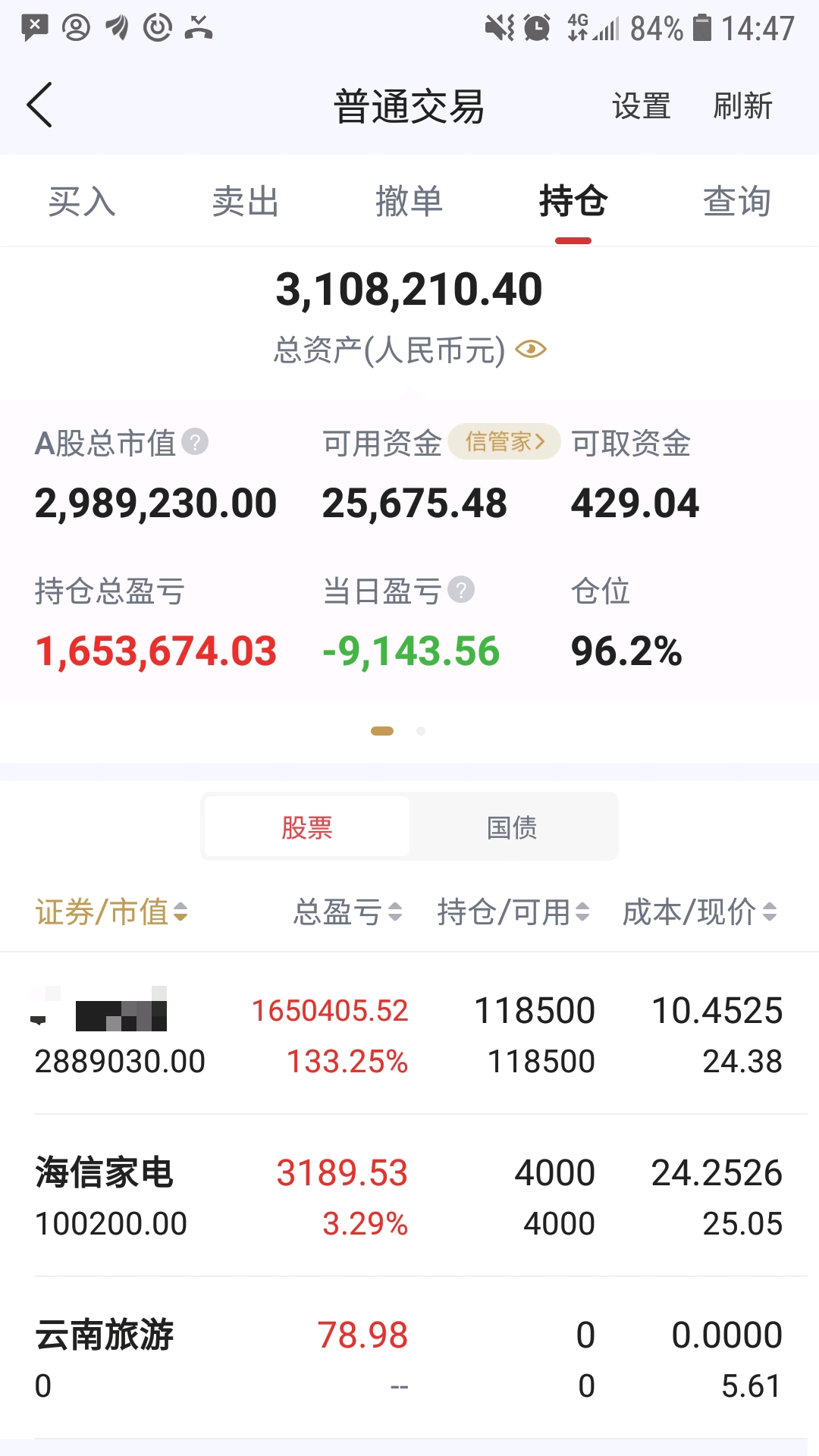 我百万富翁反正,没有赔钱,清仓了云南旅游4500股,这个股拿着害怕,我还是现金在