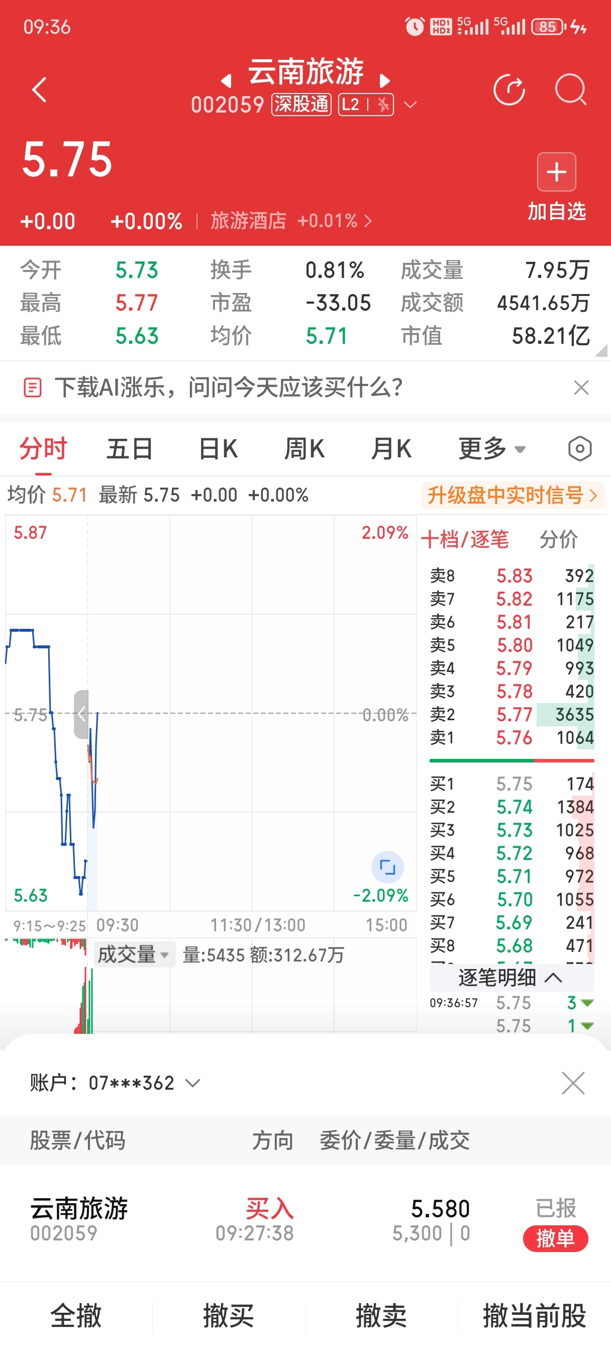 $云南旅游(SZ002059)$ 知道低开,没想到没去摸20日线,我还特意挂高3分钱建底仓,没接到,希望我判断失误,他还能调整吧。