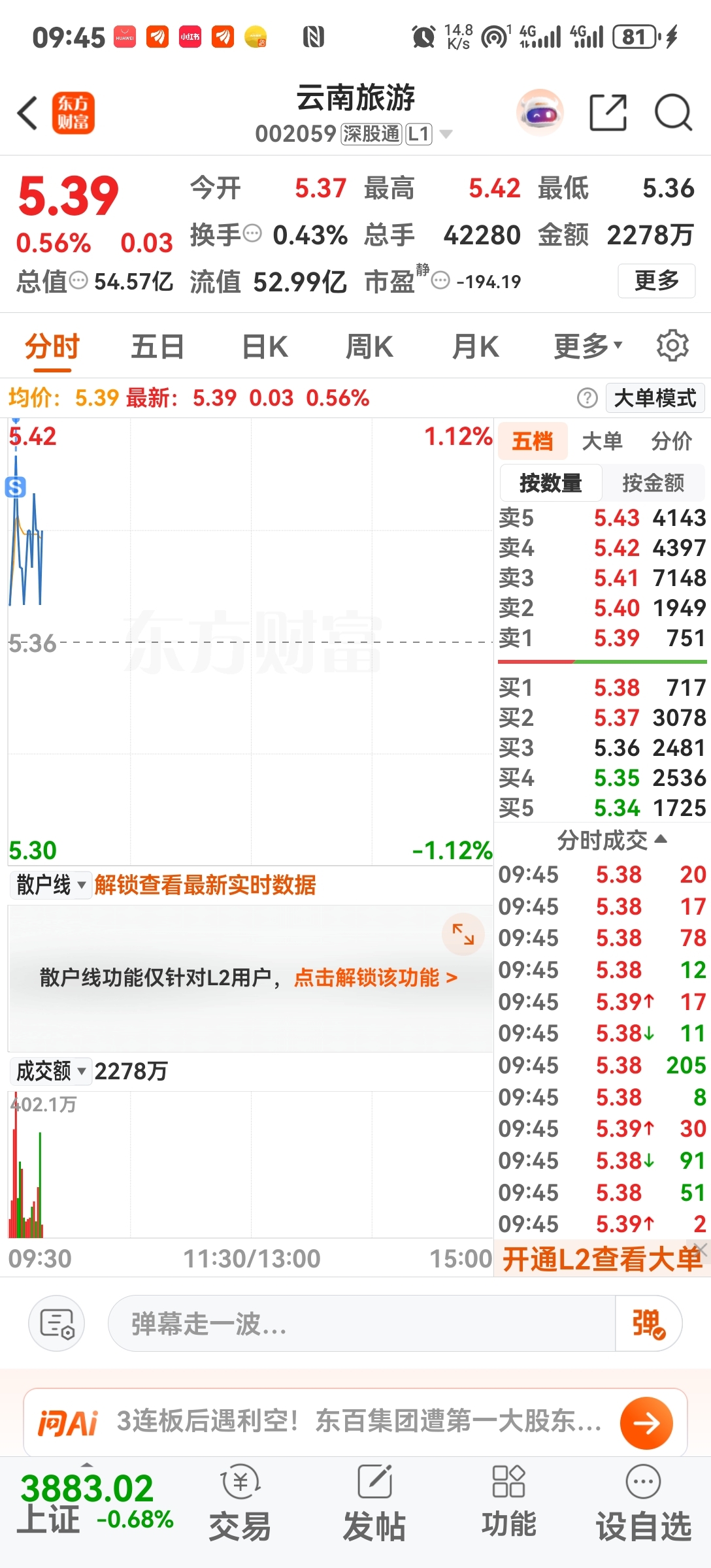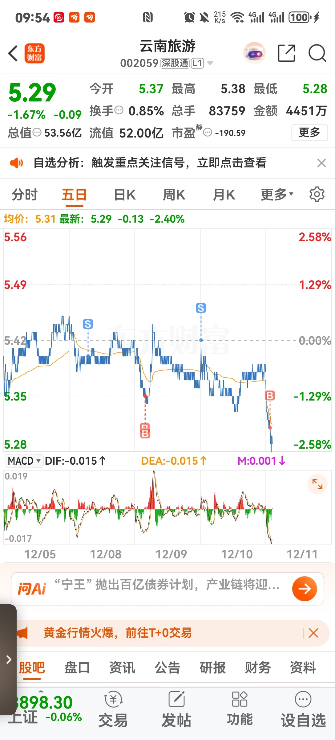 说了多少遍,这周只适合做隔日T,昨天5.42出掉,今天5.31接回,每天挣2个点