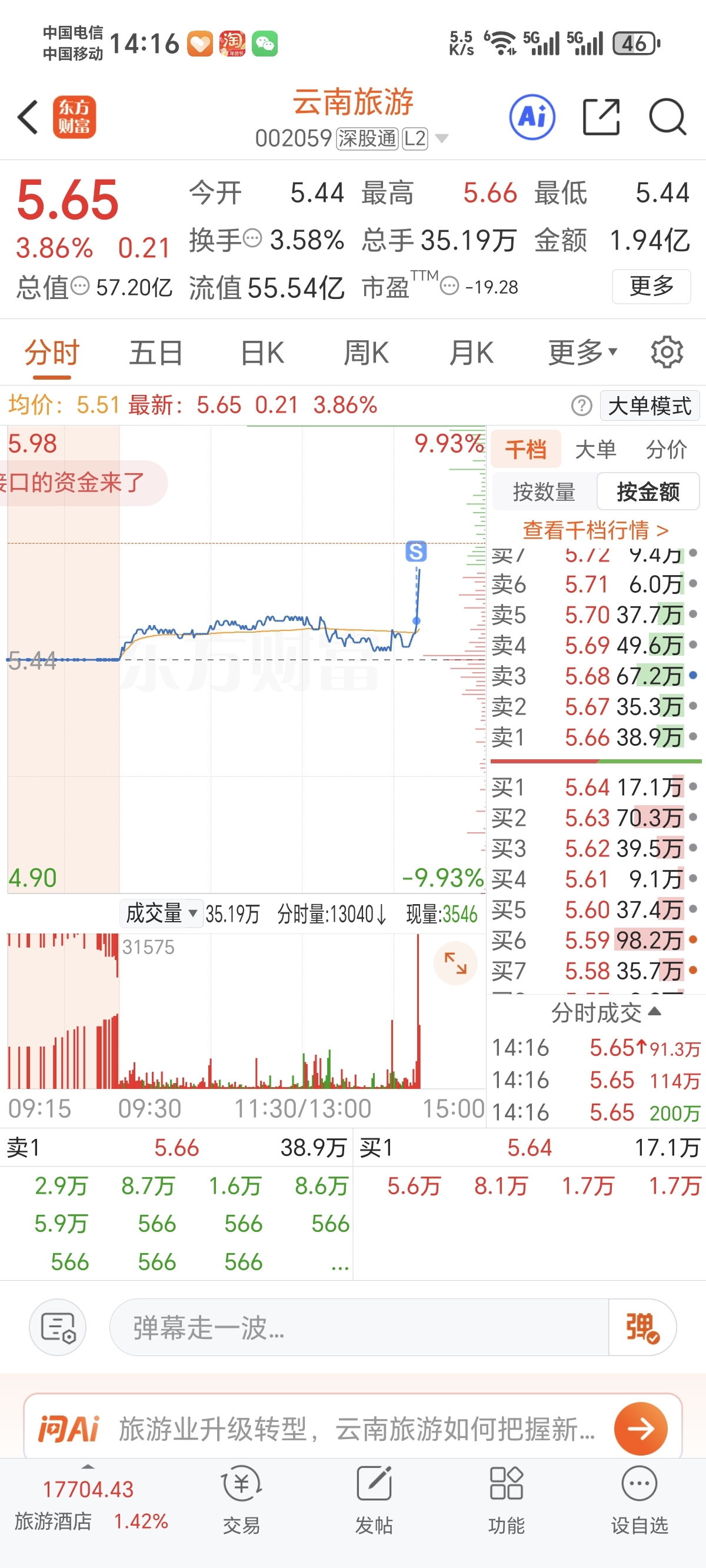 $云南旅游(SZ002059)$ 宝宝心里苦