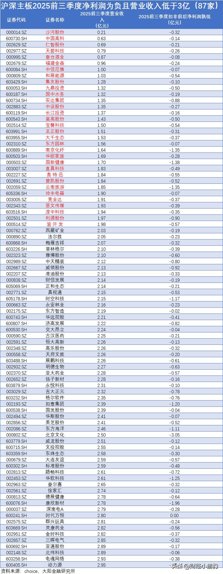 1、主板公司,如果2025年前三季度净利润为负 且 营收低于3亿元;
