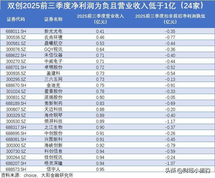 2、创业板/科创板公司,同期净利润为负 且 营收低于1亿元。