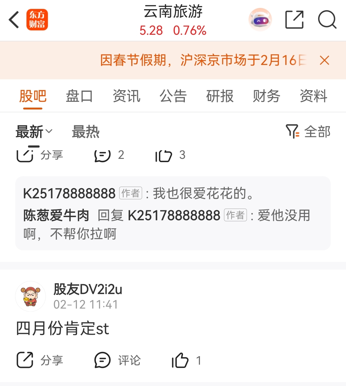 $云南旅游(SZ002059)$ 唱多的,想想看之前的20个跌停了退市股,出都出不来的st东方你们就不会唱多了