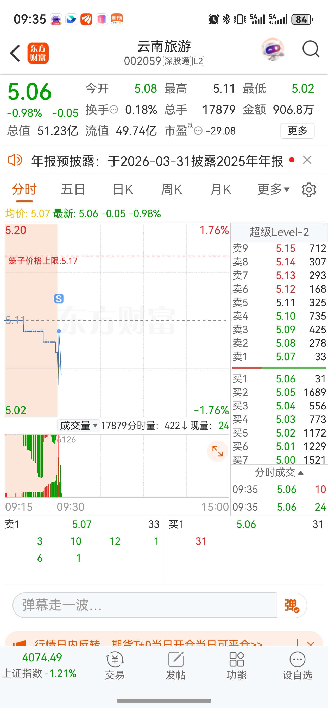 $云南旅游(SZ002059)$ 咱暂不讲赔赚,今天这波操作怎么样?