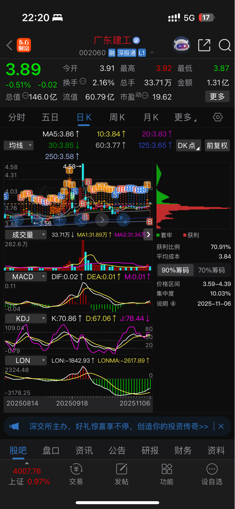 $广东建工(SZ002060)$ 4.585都不卖,你想想我会走吗?每天弄你两份