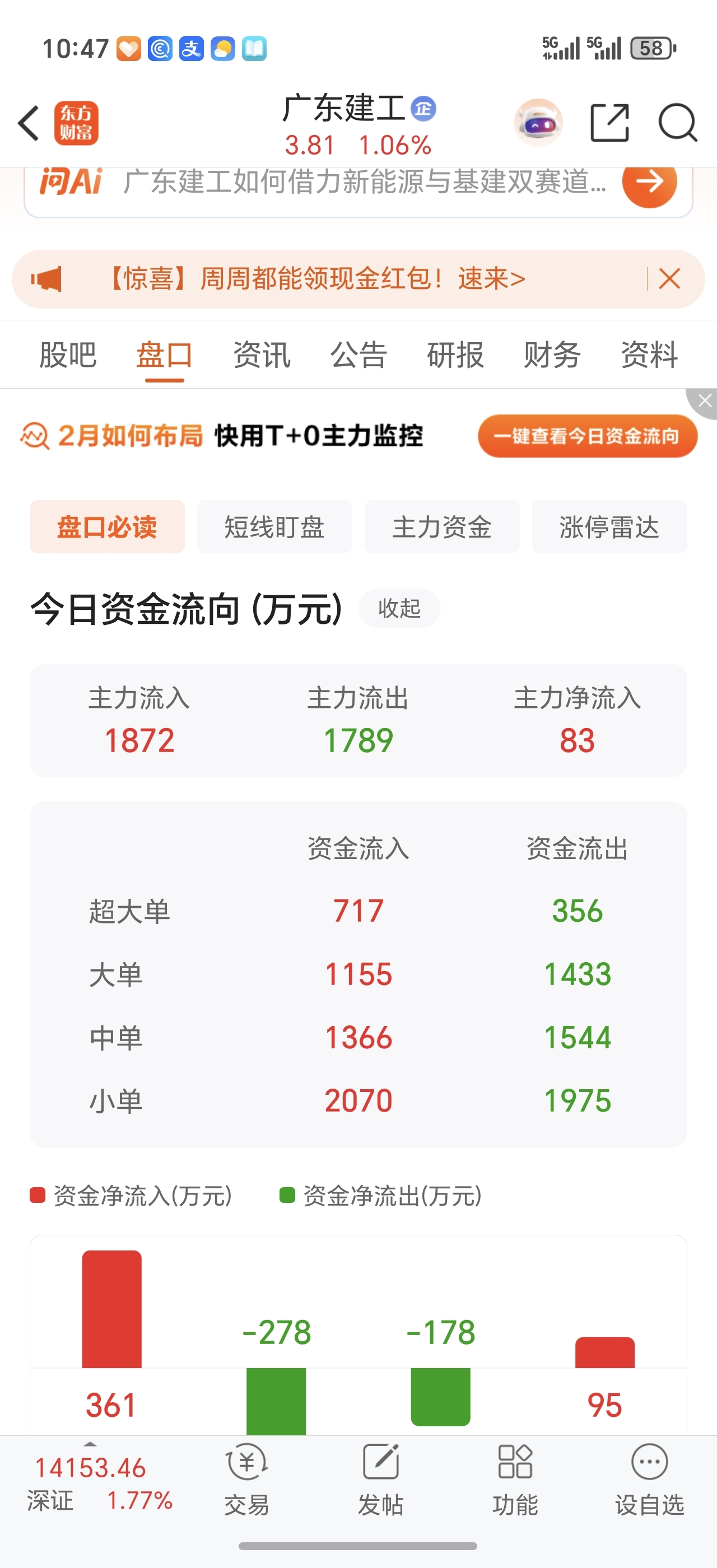 $广东建工(SZ002060)$ 早上进的几百万马上变绿了