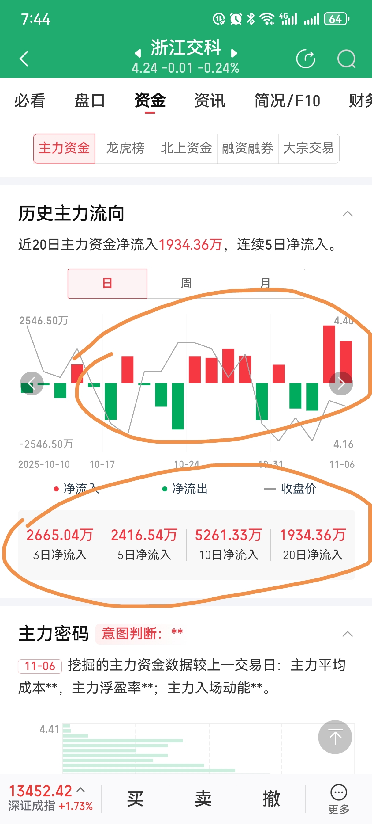 我很纳闷的是,十个交易日,有7天下跌,只收了三根红柱,为何资金一直都是净流入呢?