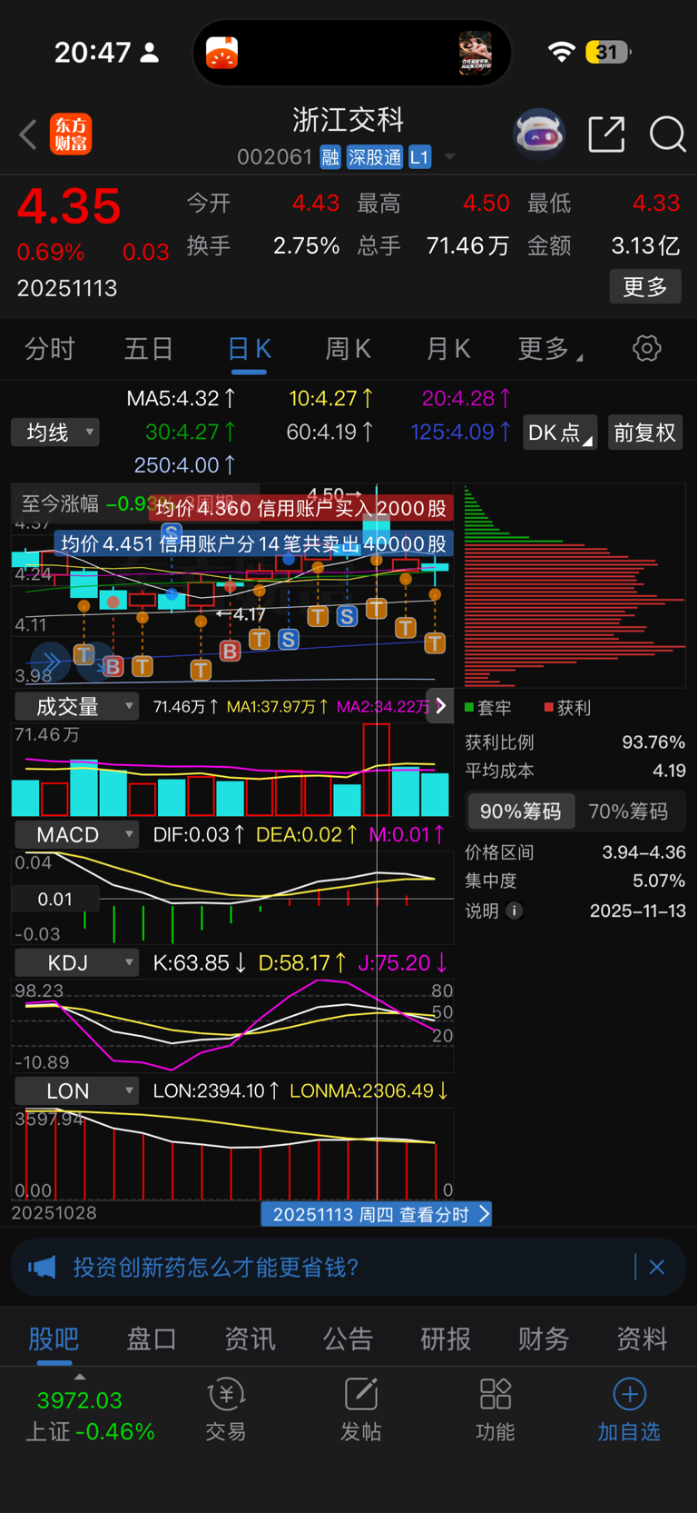 $浙江交科(SZ002061)$ 幸亏毫不留情地卖了一半,今天4.25又买回二万