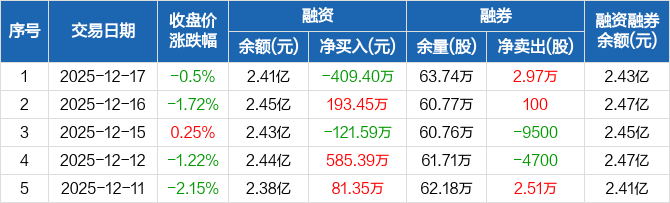 浙江交科:融资净偿还409.4万元,融资余额2.41亿元(12-17)