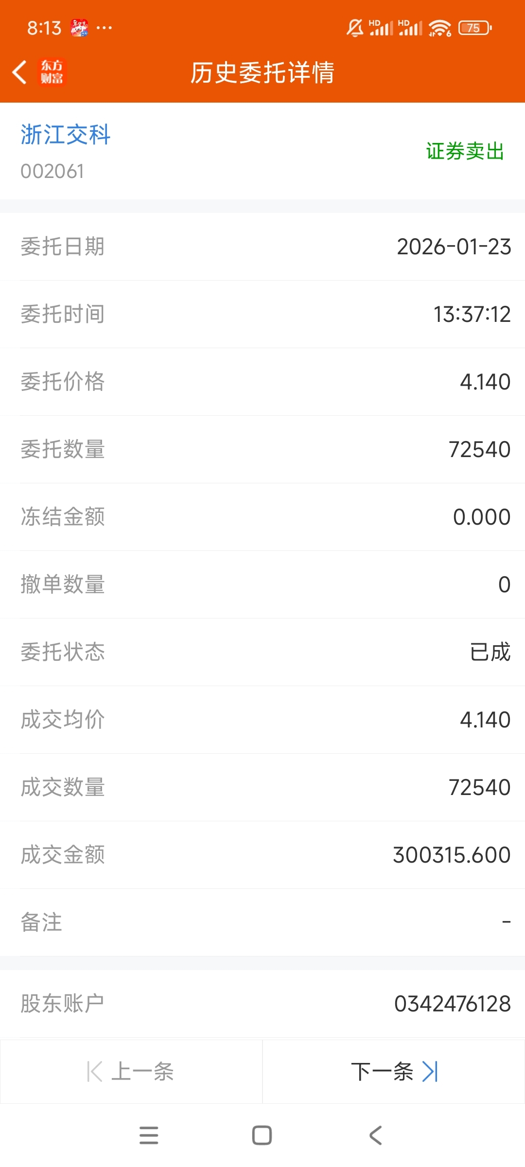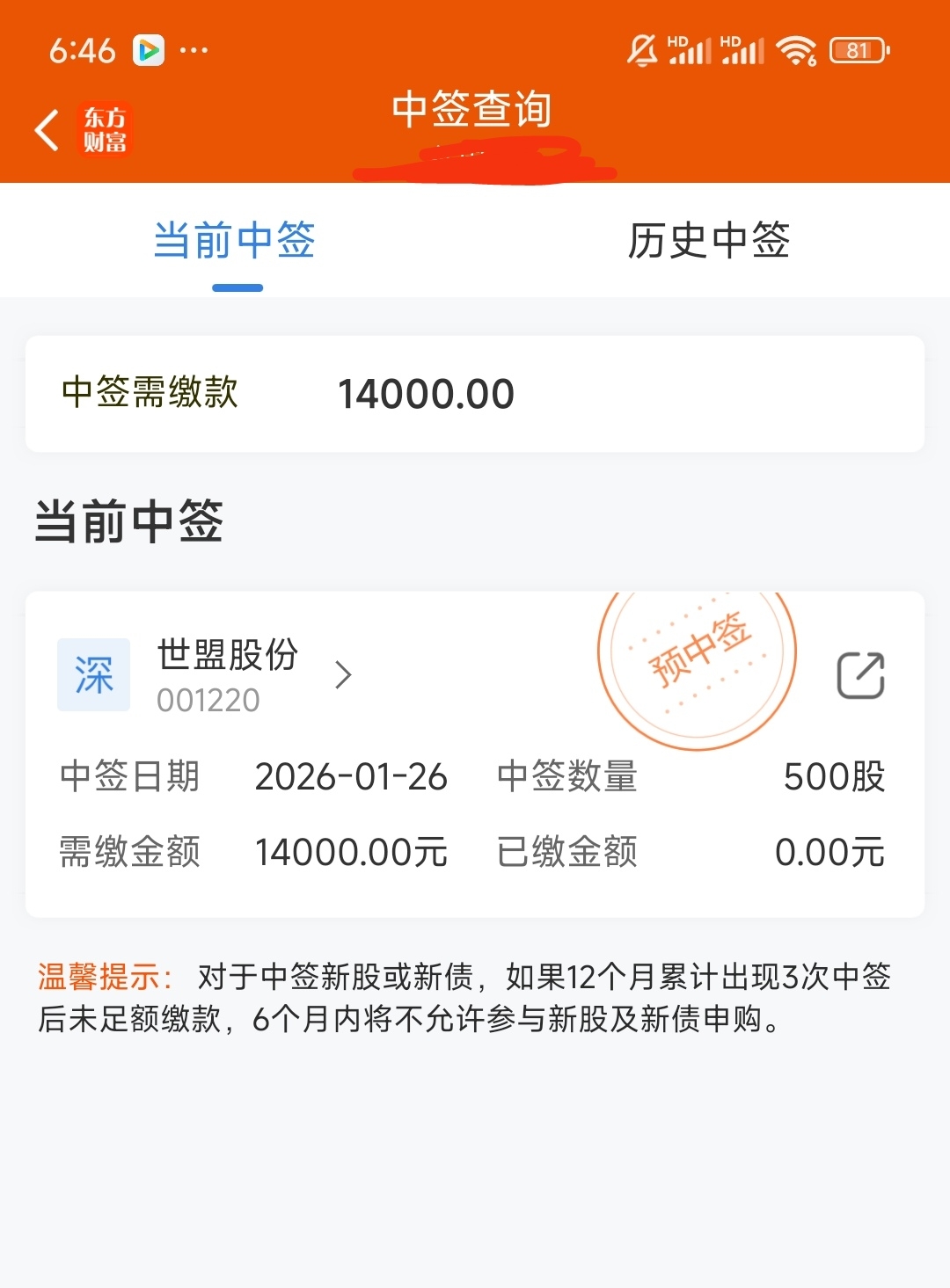 感谢交科,在我清仓当天还中了新股。