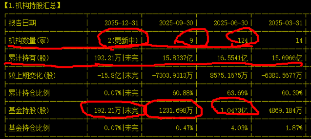 2025年9月机构基金持股1亿股,到2025年12月都跑光了,看图。