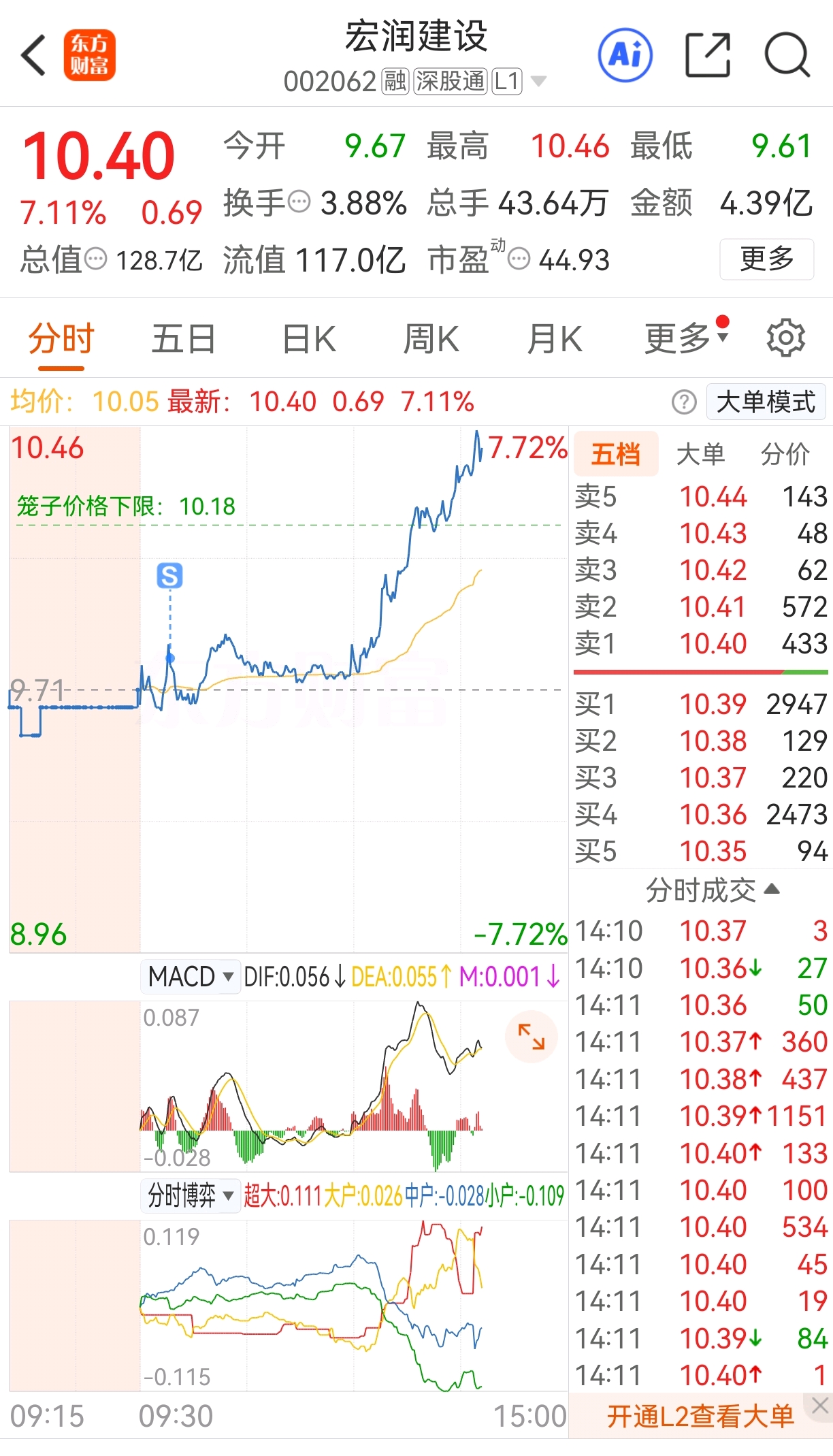 $宏润建设(SZ002062)$ 幸好还有一点点仓低