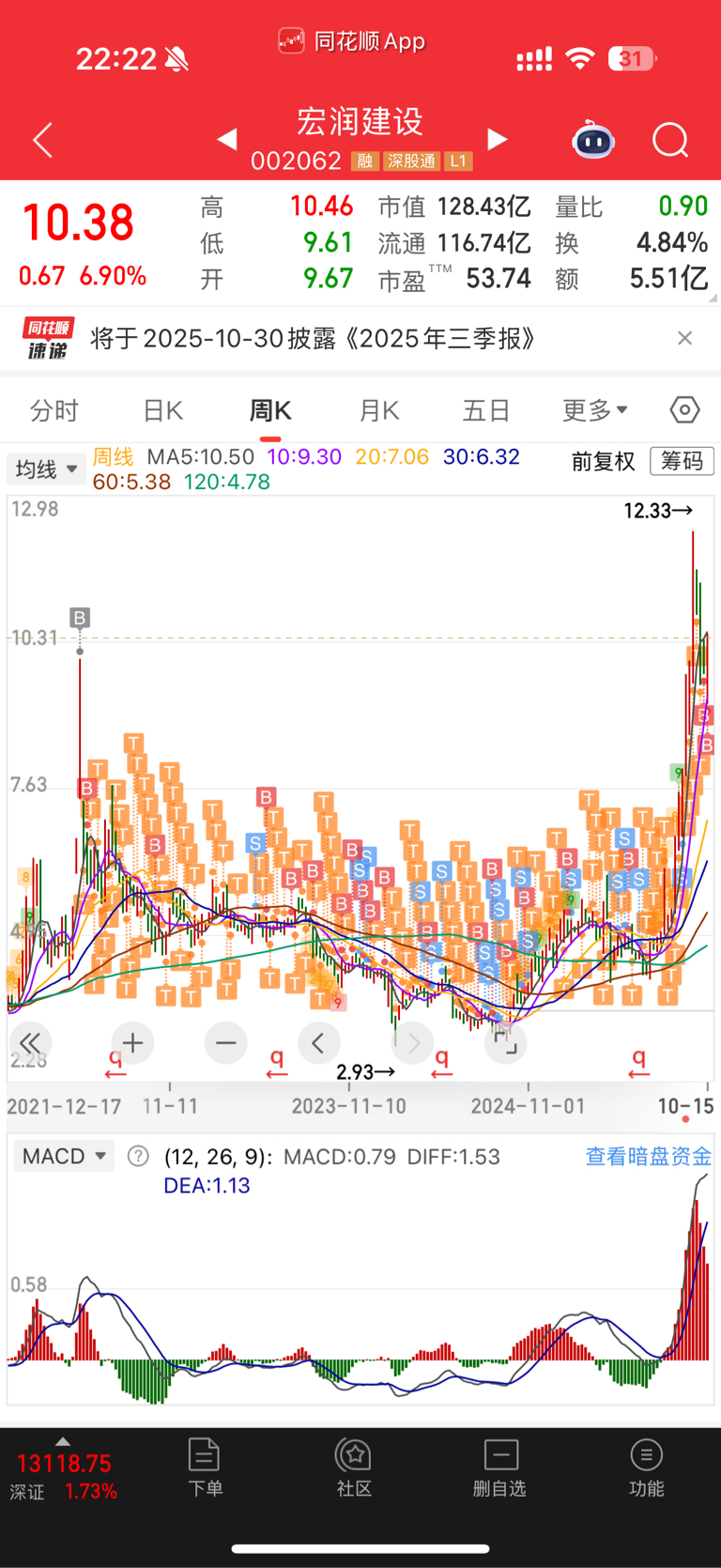 $宏润建设(SZ002062)$ 还有比我更早买的?说我唱空,唱空我会一直拿着?看图形看k线看趋势,该卖就卖,该买就买,哪有那么多刚好的,亏了就亏了呗,手续费印花税都花了三万了