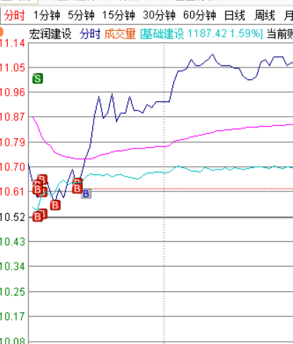 走势挺浪啊第一分钟一笔高抛然后就是买买买等下到均线继续买