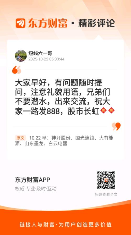 温馨提示: 1.根据《证券法》规定,禁止编造、传播虚假信息或者误导性信息,扰乱证券市场;2.用户在本社区发表的所有资料、言论等仅代表个人观点,与本网站立场无关,不对您构成任何投资建议。用户应基于自己的独立判断,自行决定证券投资并承担相应风险。《东方财富社区管理规定》