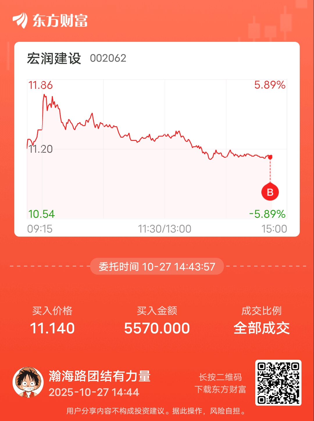 委托标的:宏润建设买卖方向:买笔记:加仓加仓,一把亏光